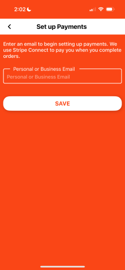 To get paid, enter your email. You will receive a link to Stripe via email. Create your account on Stripe to link your bank account (instructions below).