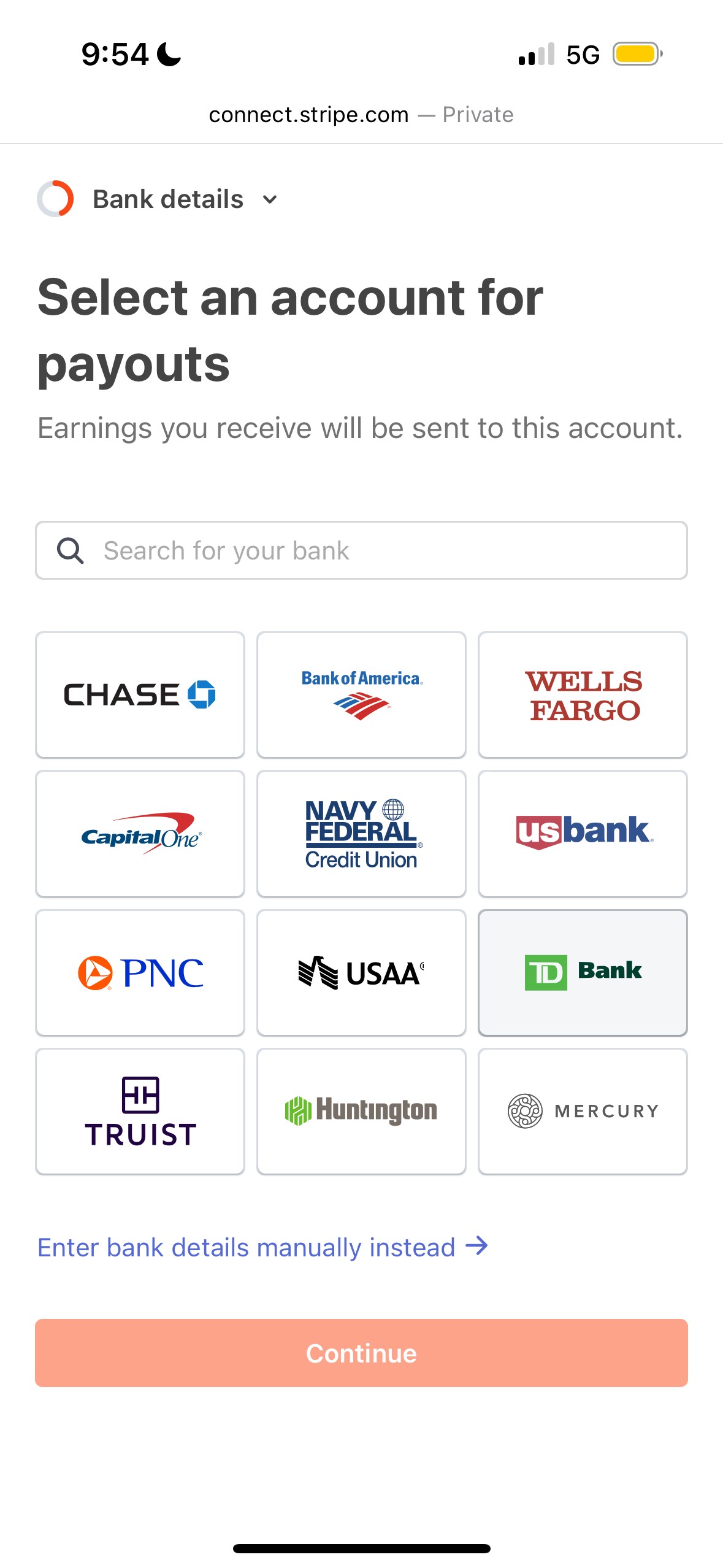 Select your bank. You will be redirected to your bank’s website in order to link your bank account.