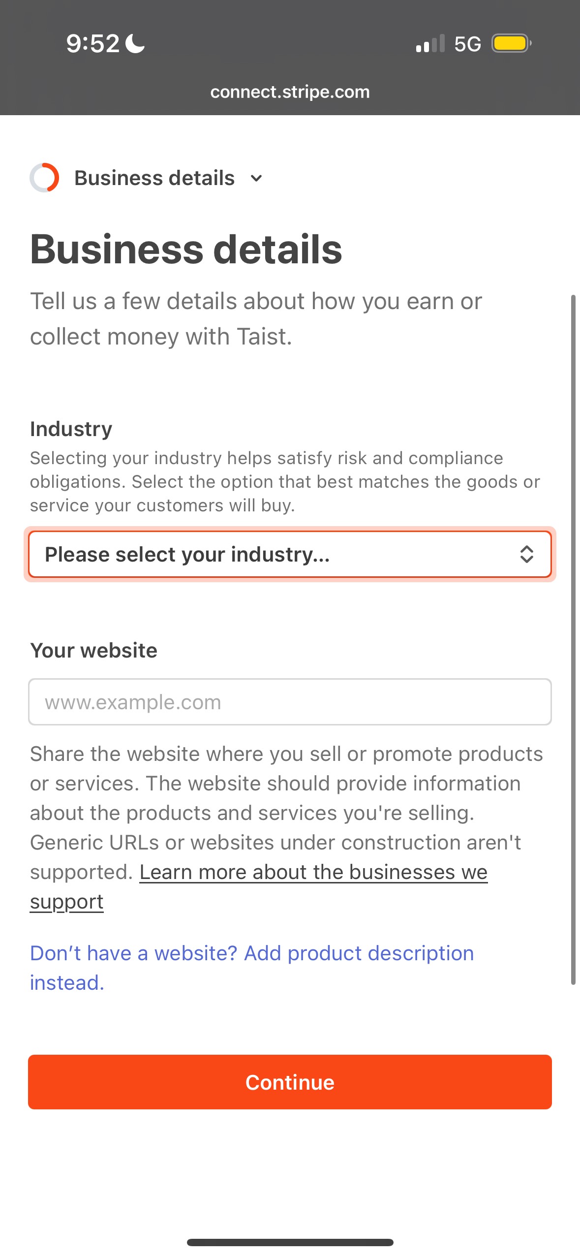 Then, select “Other food and dining”. For website, type in “taist.app”.